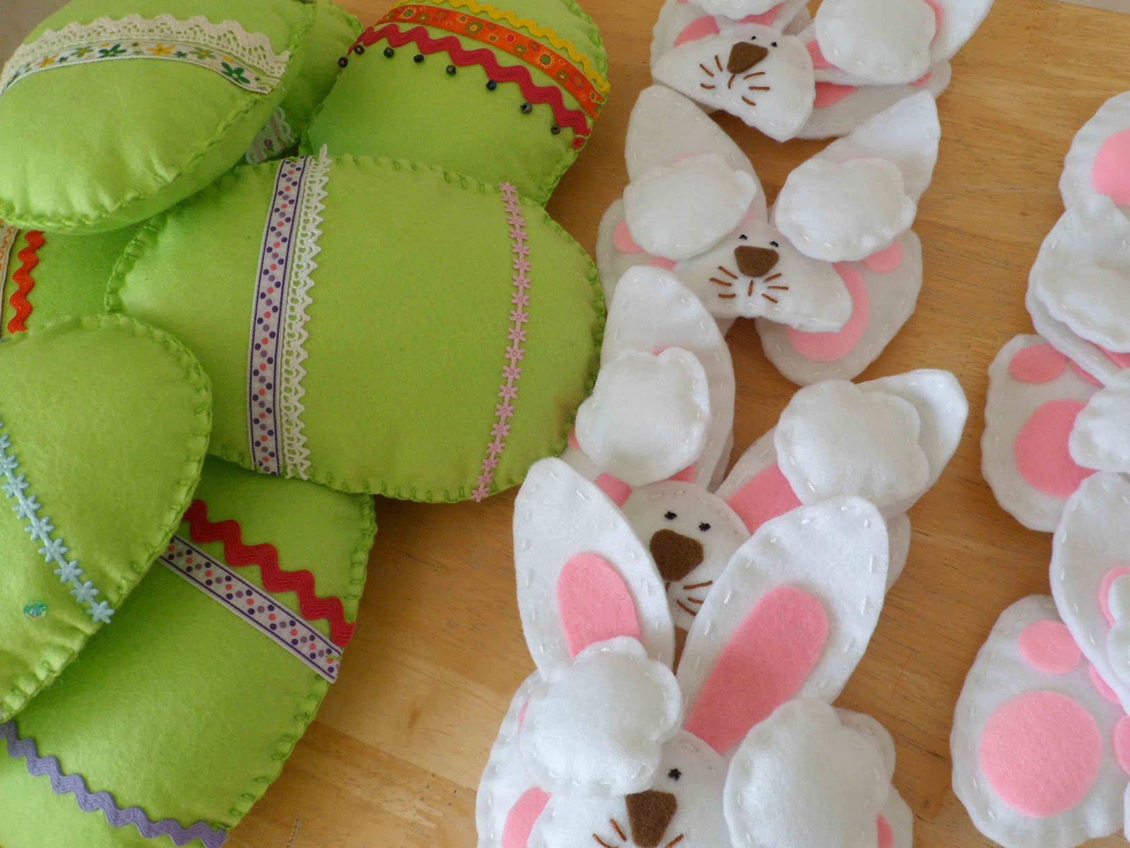 E em modo Páscoa fazem-se coelhos, muitos coelhos e ovos em feltro...