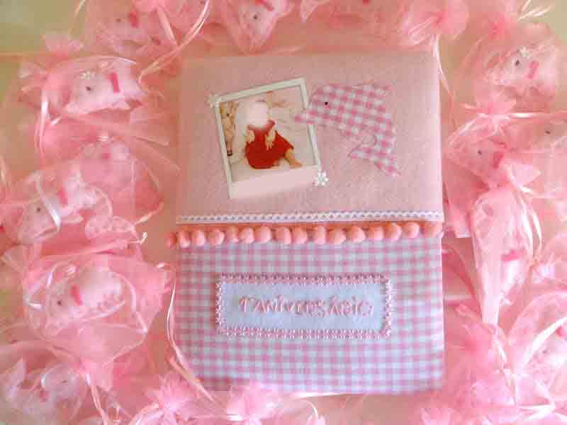 Pensado para o primeiro aniversário de uma menina, surge assim um golfinho cor-de-rosa como lembrança para os convidados.