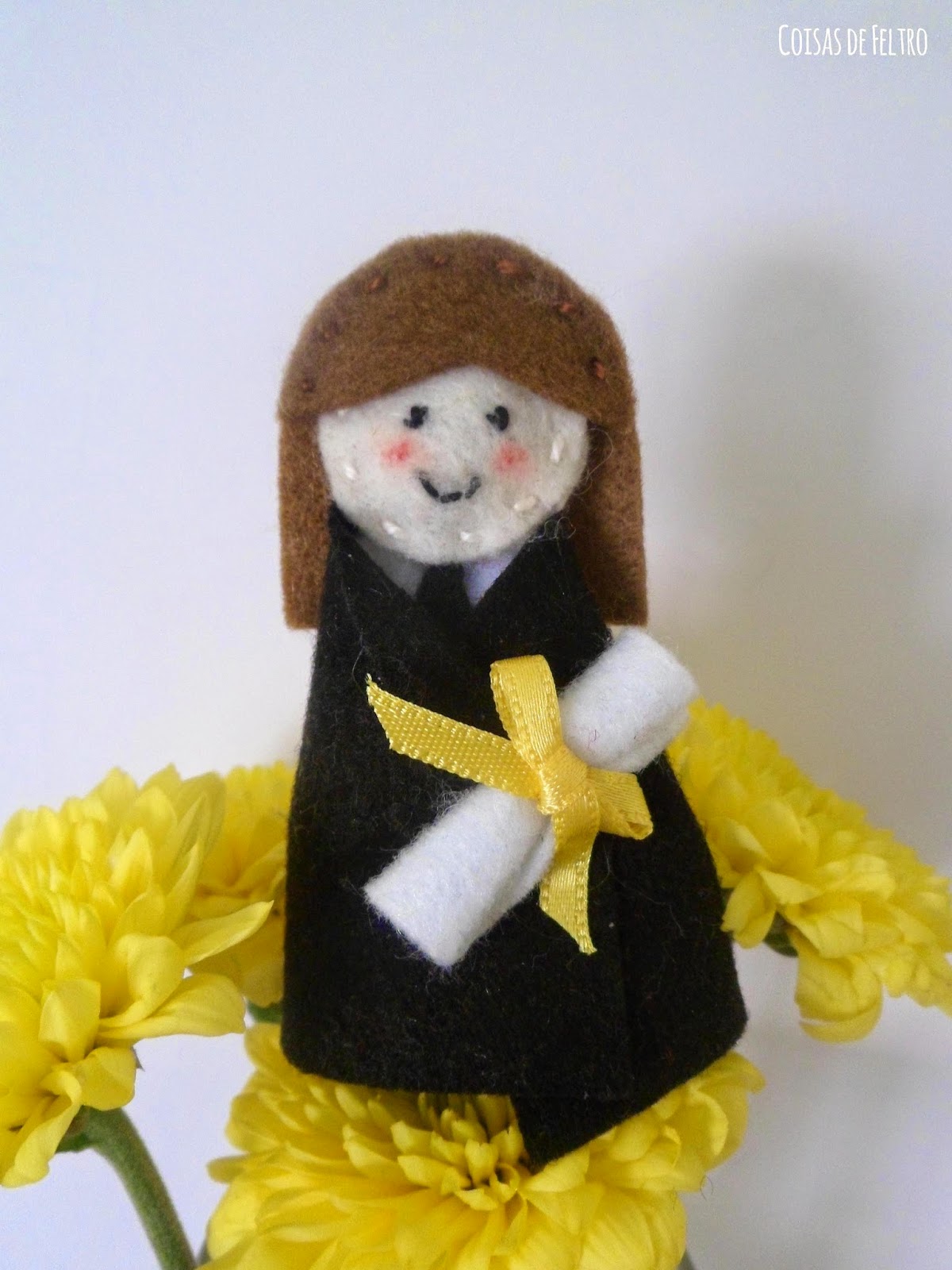 E hoje mesmo fiz esta pregadeira para uma jovem finalista. Com um lacinho na cor do curso, irá ser usada no dia mais importante da sua vida académica.