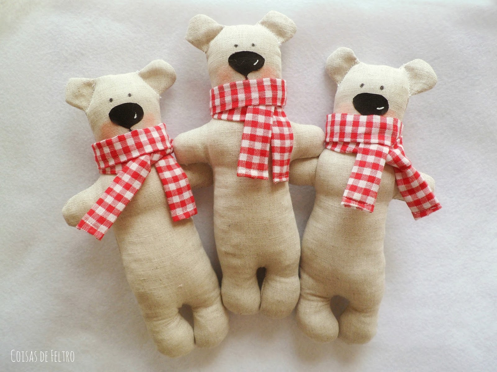Mas estes ursinhos parecem bem aconchegados. Um mimo para o Natal que aquecerá certamente o coração de quem os receber.